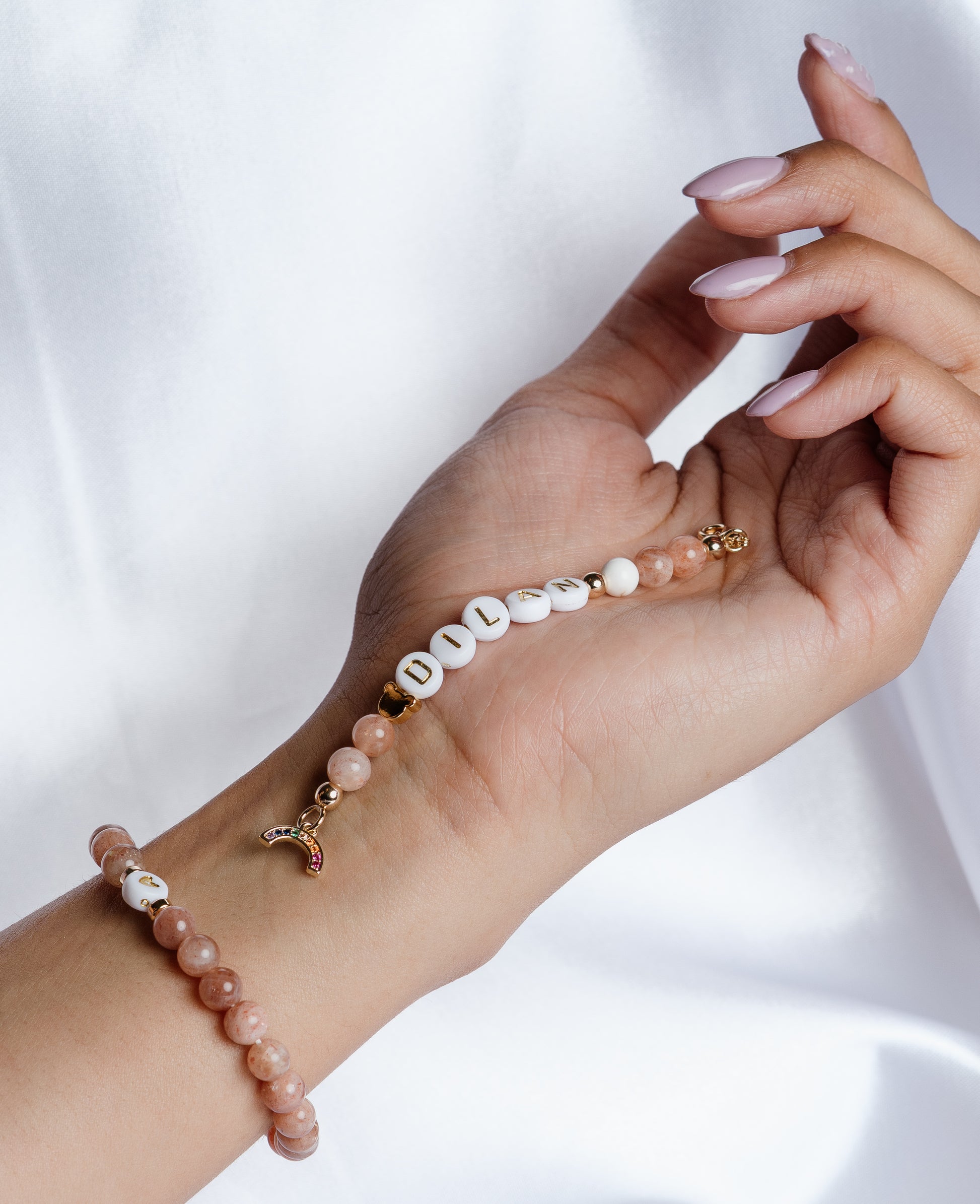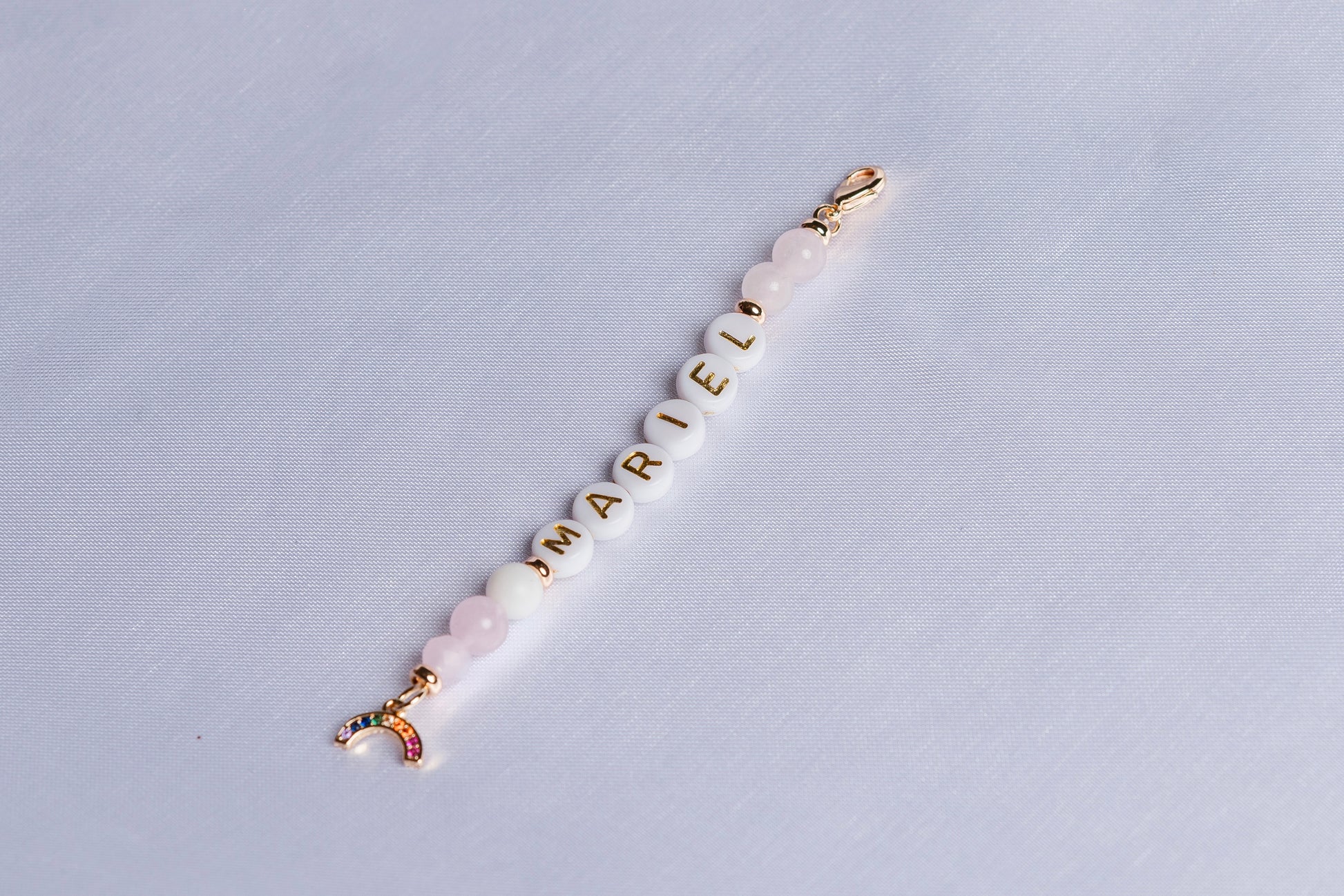 Al crear tu orden deja una nota del nombre de piedra que quieres, las iniciales que quieres o nombre personalizado de tu hij@ arcoiris. Tambien puede ser un corazón representando a tu bebe arcoiris.