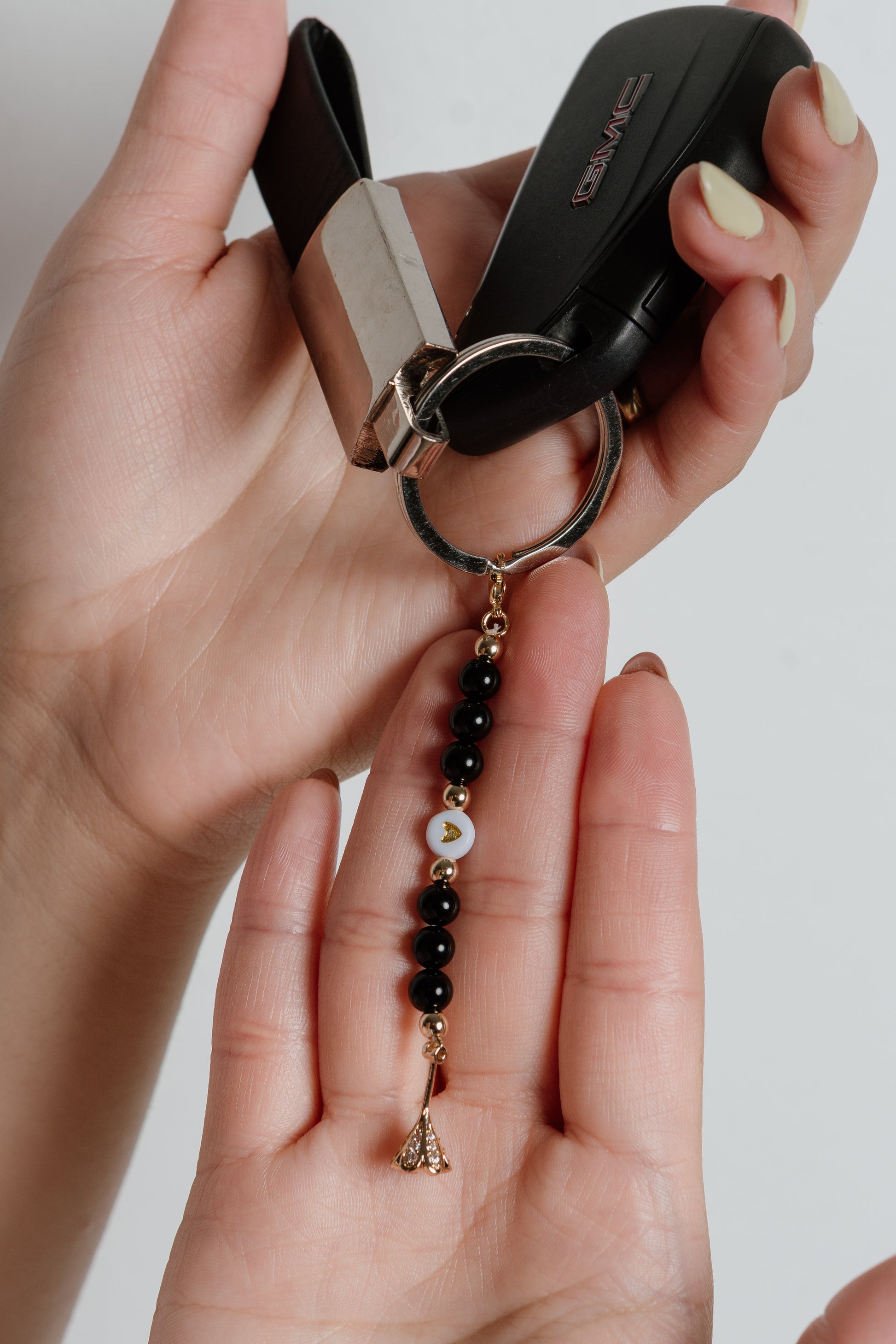 Llavero hecho a mano, con piedras naturales.